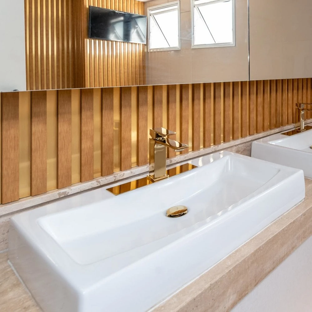 This gold Moulding’s features a wonderful contemporary look while also providing coverage over expansion gaps and create a finished look around the edges of a room. The Moulding comes in 2.4m length pieces, with a 8mm thickness.